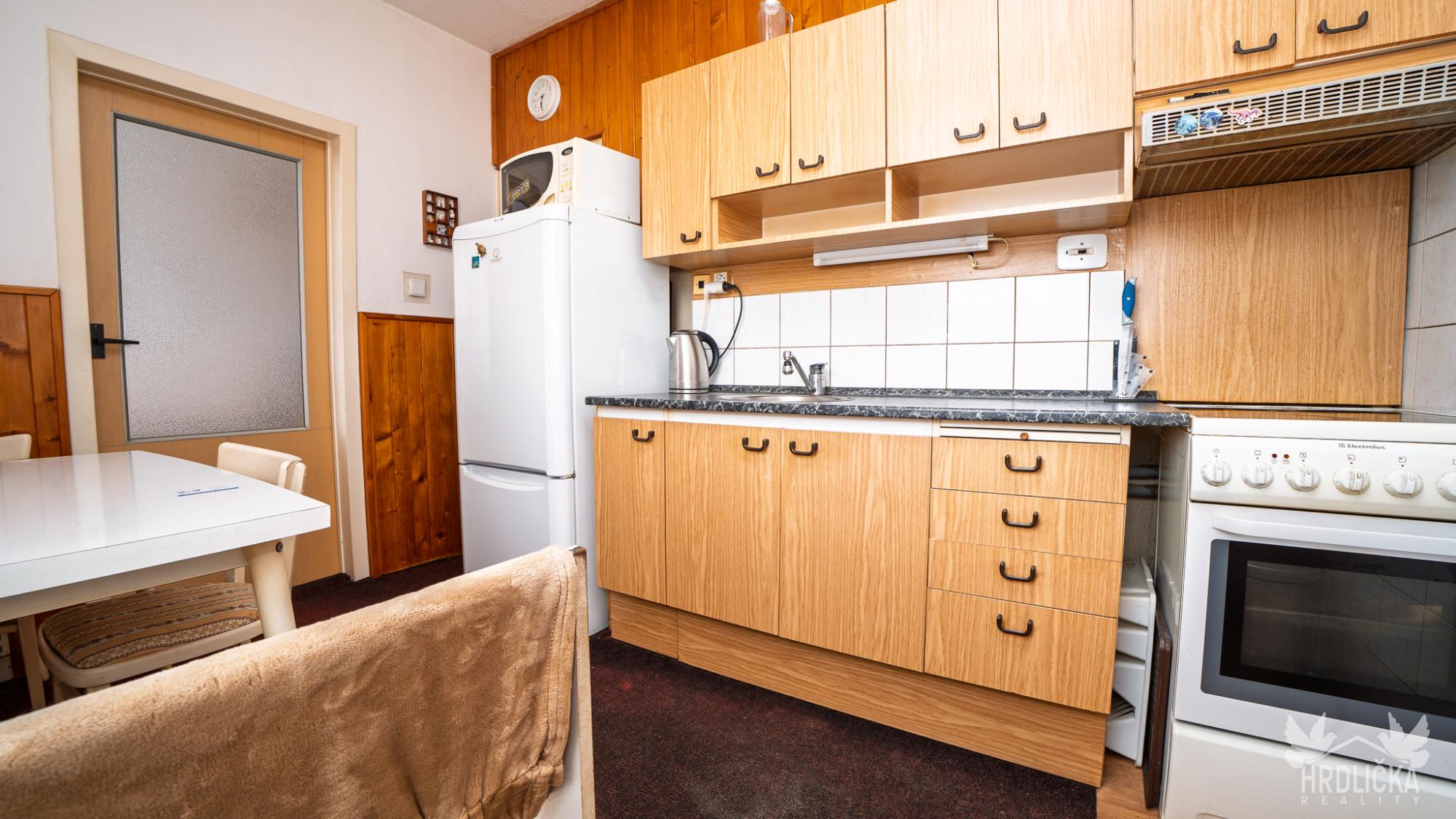 Byt disponuje užitnou plochou 70,6 m² a nabízí praktické dispoziční řešení zahrnující obývací pokoj, ložnici, dětský pokoj a samostatnou kuchyni. Součástí bytu je dále vstupní chodba s vestavěnou skříní, koupelna s vanou, samostatné WC a původní umakartové jádro. Jednotka je určena k celkové modernizaci, což představuje ideální příležitost pro realizaci vlastního bydlení dle individuálních představ.