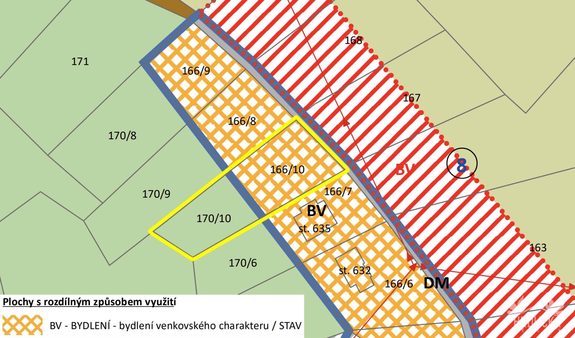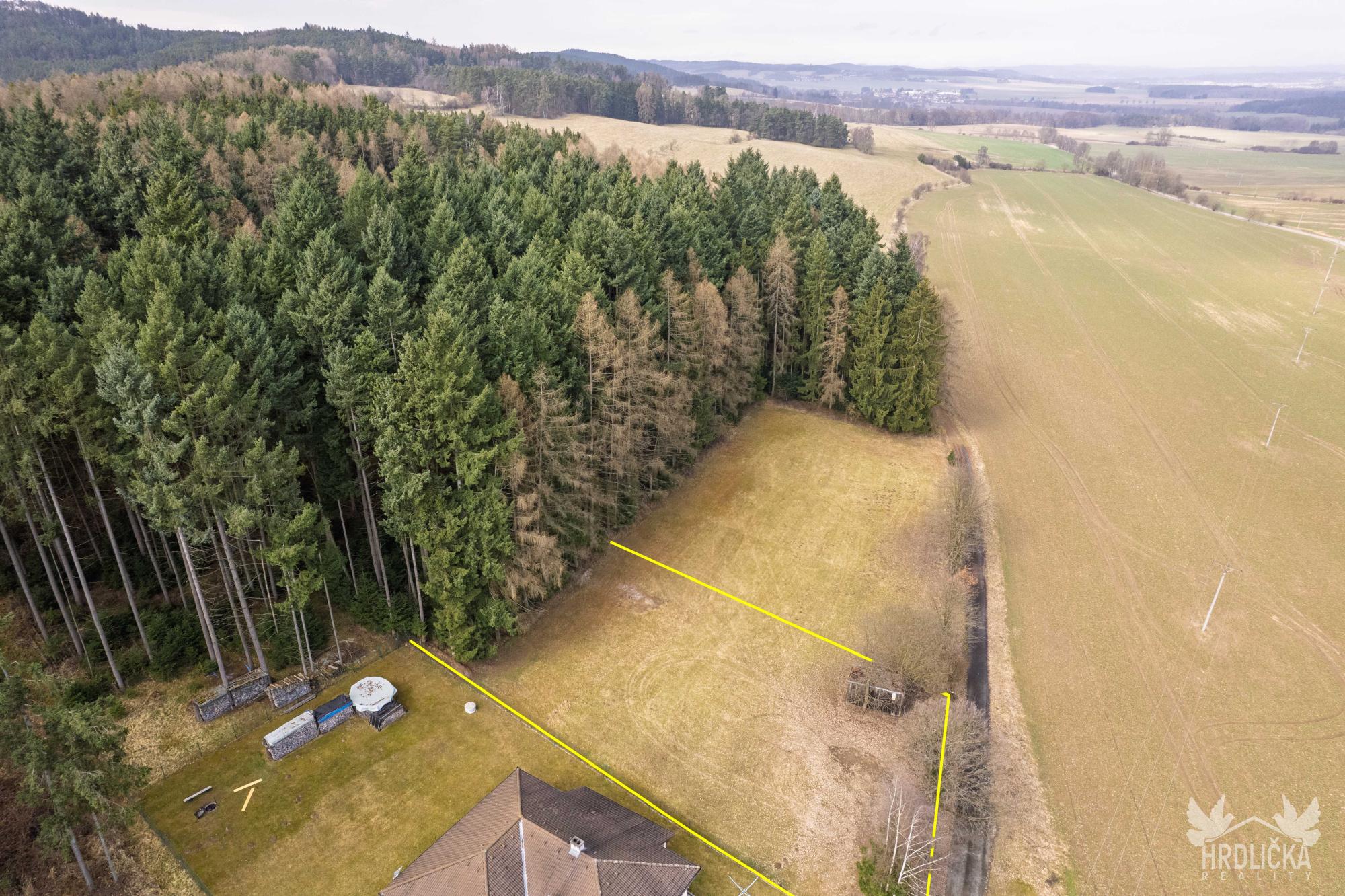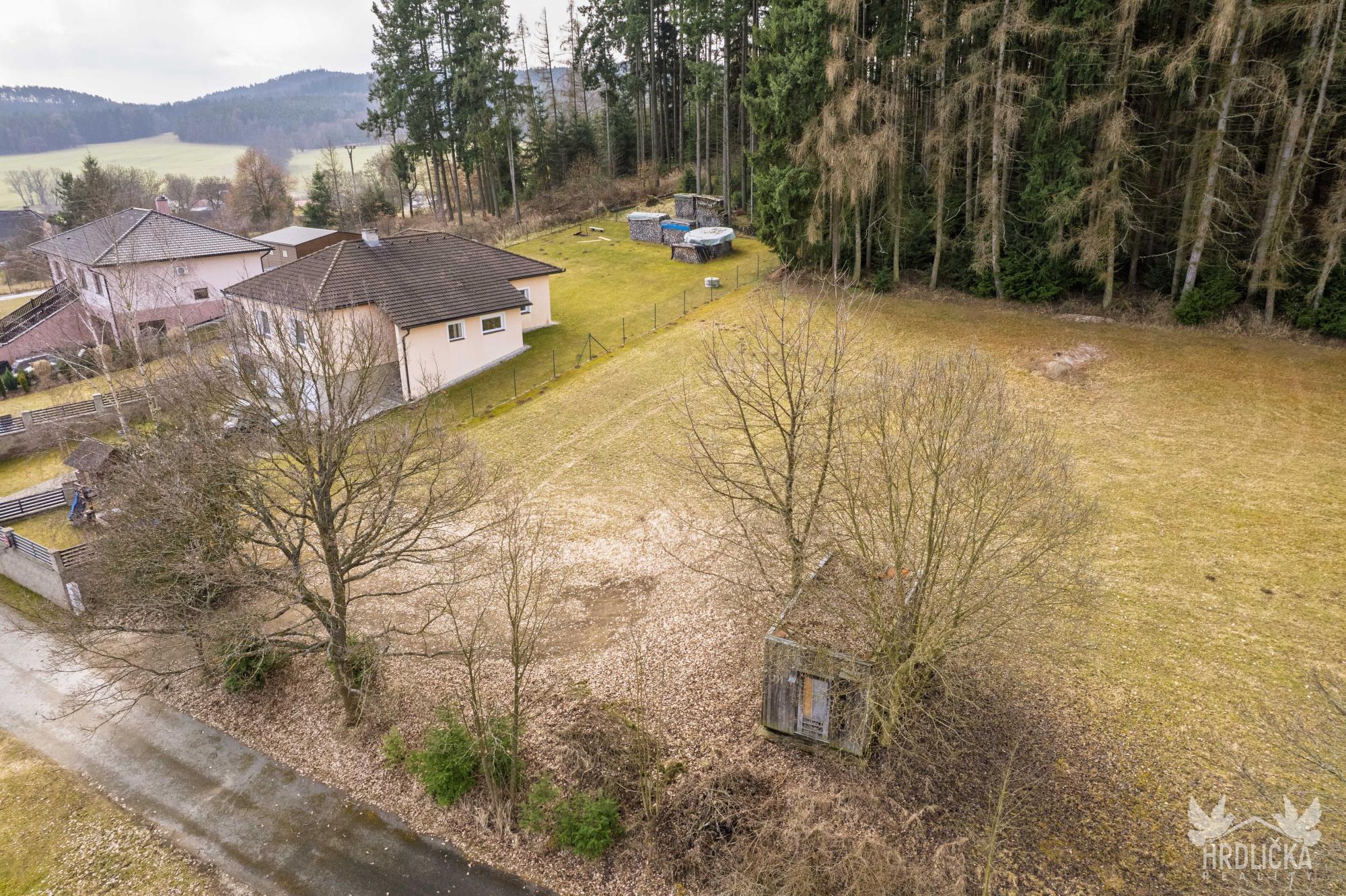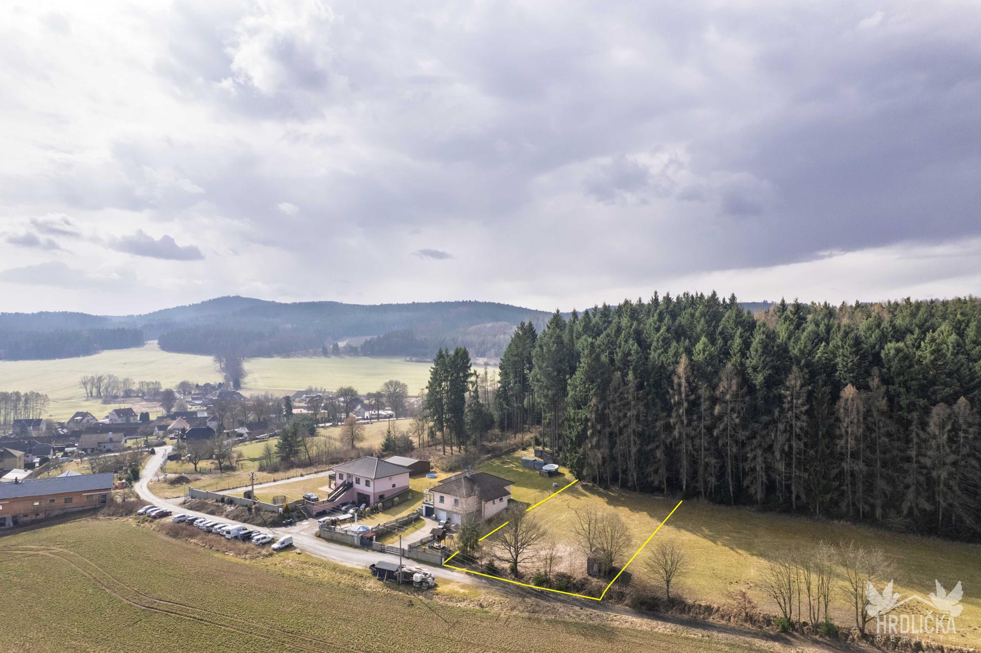 Pozemek se nachází v území určeném pro bydlení venkovského charakteru, které umožňuje výstavbu rodinného domu s možností hospodářského zázemí, užitkové zahrady, drobného chovu zvířectva či pěstební činnosti. Jedná se o klidné venkovské bydlení s důrazem na tradiční způsob využití, nikoliv o čistě městskou rezidenční zástavbu. Lokalita je vhodná také pro klidné podnikání menšího rozsahu, které nenarušuje okolní bydlení. Přípustné je rovněž umístění drobných provozoven, služeb, zahradnictví nebo zařízení souvisejících se zemědělskou činností a samozřejmostí je možnost vybudování parkovacích stání na vlastním pozemku. Podmíněně lze realizovat i rekreační objekty nebo ubytovací zařízení, a to za splnění podmínek územního plánu, zejména zajištění dostatečného parkování. Celkově se jedná o klidnou venkovskou lokalitu s širokými možnostmi využití, ideální jak pro trvalé bydlení, tak pro kombinaci bydlení s podnikáním či rekreací. Elektřina je již přivedena na hranici pozemku formou kapličky, zásobování vodou je řešeno prostřednictvím již zřízeného vlastního vrtu a odkanalizování bude řešeno prostřednictvím vlastní čistírny odpadních vod s přepadem do vsaku. Pozemek se nachází ve velmi klidné části obce a nabízí krásný výhled do okolní krajiny, přičemž příjezd je zajištěn po zpevněné veřejné komunikaci. Součástí nabídky je stavební pozemek o výměře 1076 m², který se částečně nachází v ochranném pásmu lesa a dále navazující lesní pozemek o výměře 837 m².