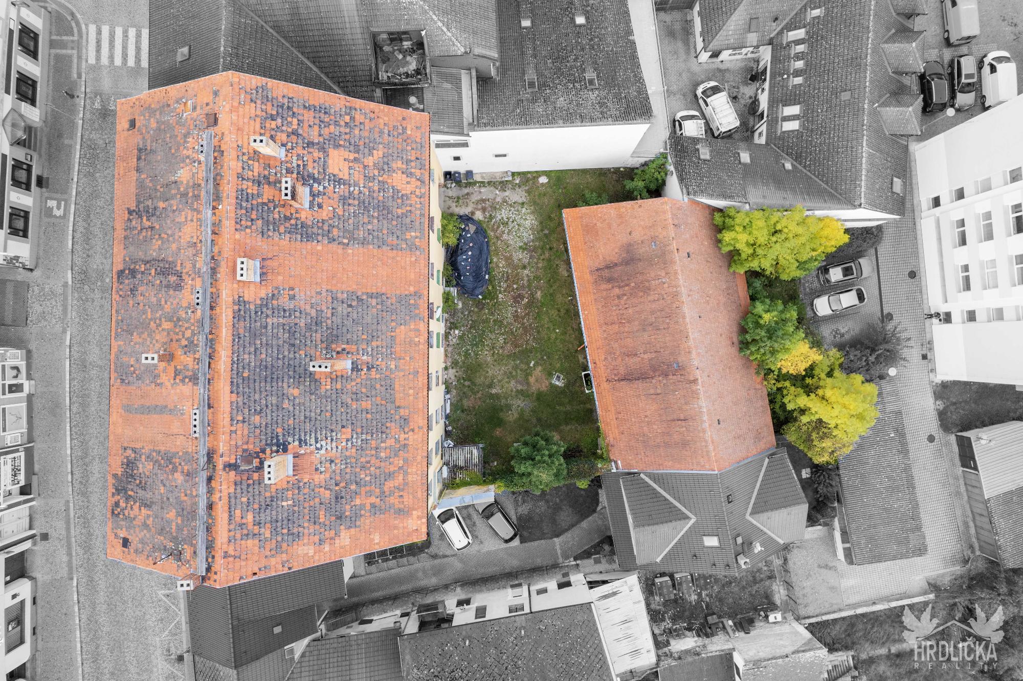 PRODÁNO - Dům s příslušenstvím na parcele v samém centru města Strakonice. Celková výměra pozemků je 1.137 m2. Dle územního plánu se jedná o Sbo – plochy smíšené obytné. Dům je tedy užíván v souladu s územním plánem jako bytový s komerčními prostorami, které přímo navazují na uliční prostor Velké náměstí / ul. Lidická. Budova je aktuálně členěna na 6 bytových jednotek, 2 komerční prostory (prodejny) s výkladci a přímým vstupem z ulice, 2 další komerční prostory (cukrářská výroba a sklad) přístupné z domu a ze dvora, a příslušenství. Prostorný dvůr je komfortně přístupný průjezdem na levé straně domu, z části dlážděný, užívaný k parkování apod. Dvůr z jihu uzavírá hospodářská stavba, částečně zastropená klenbami (garážové stání a sklady), kterou lze projít dále do zahrady na jižní straně objektu.
