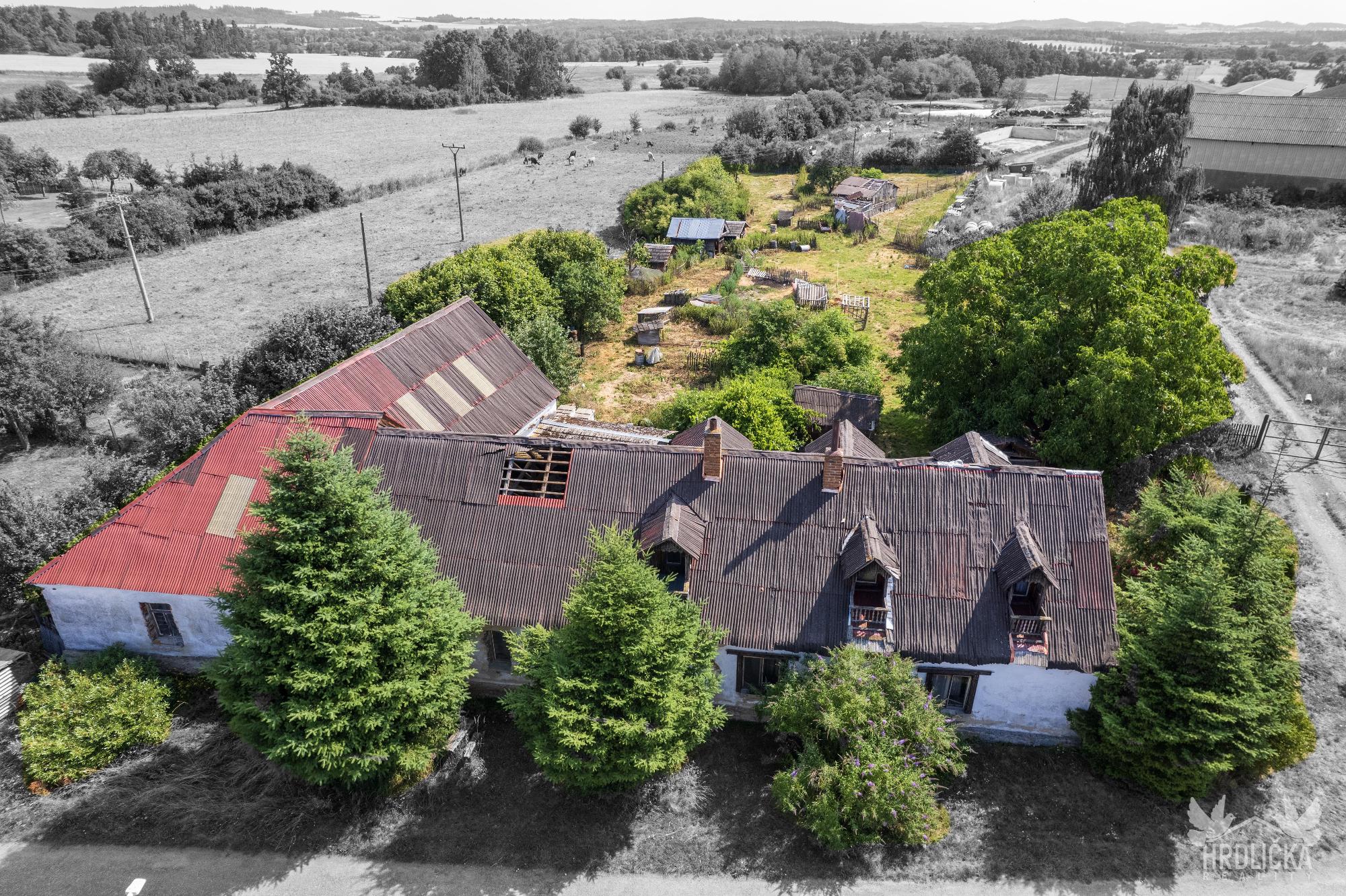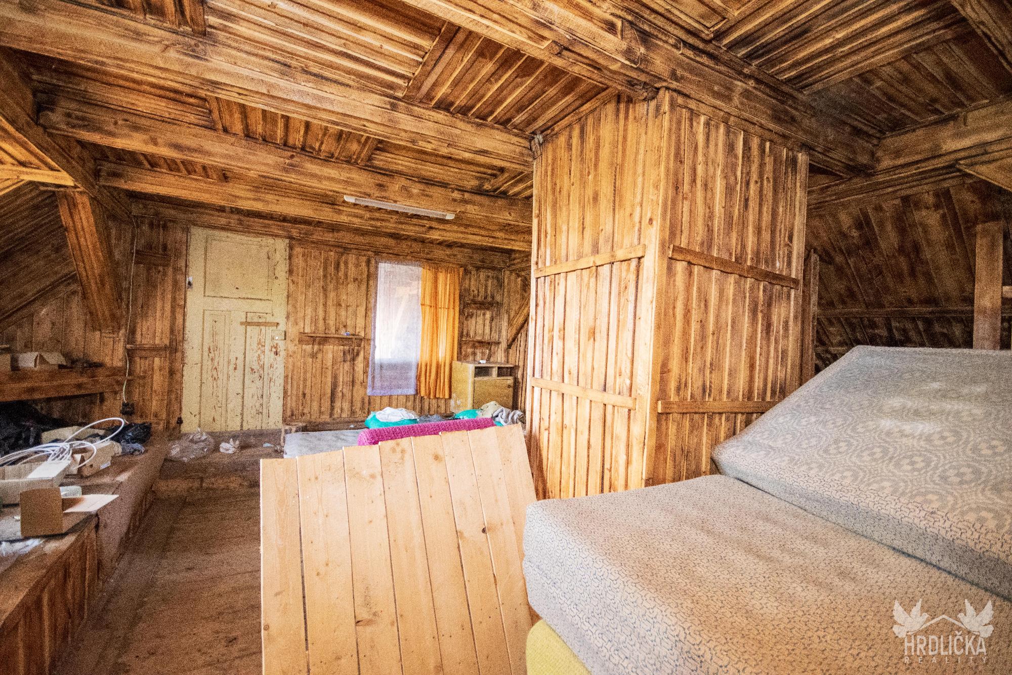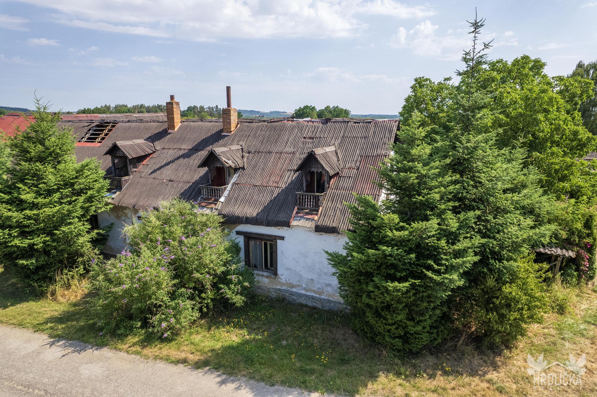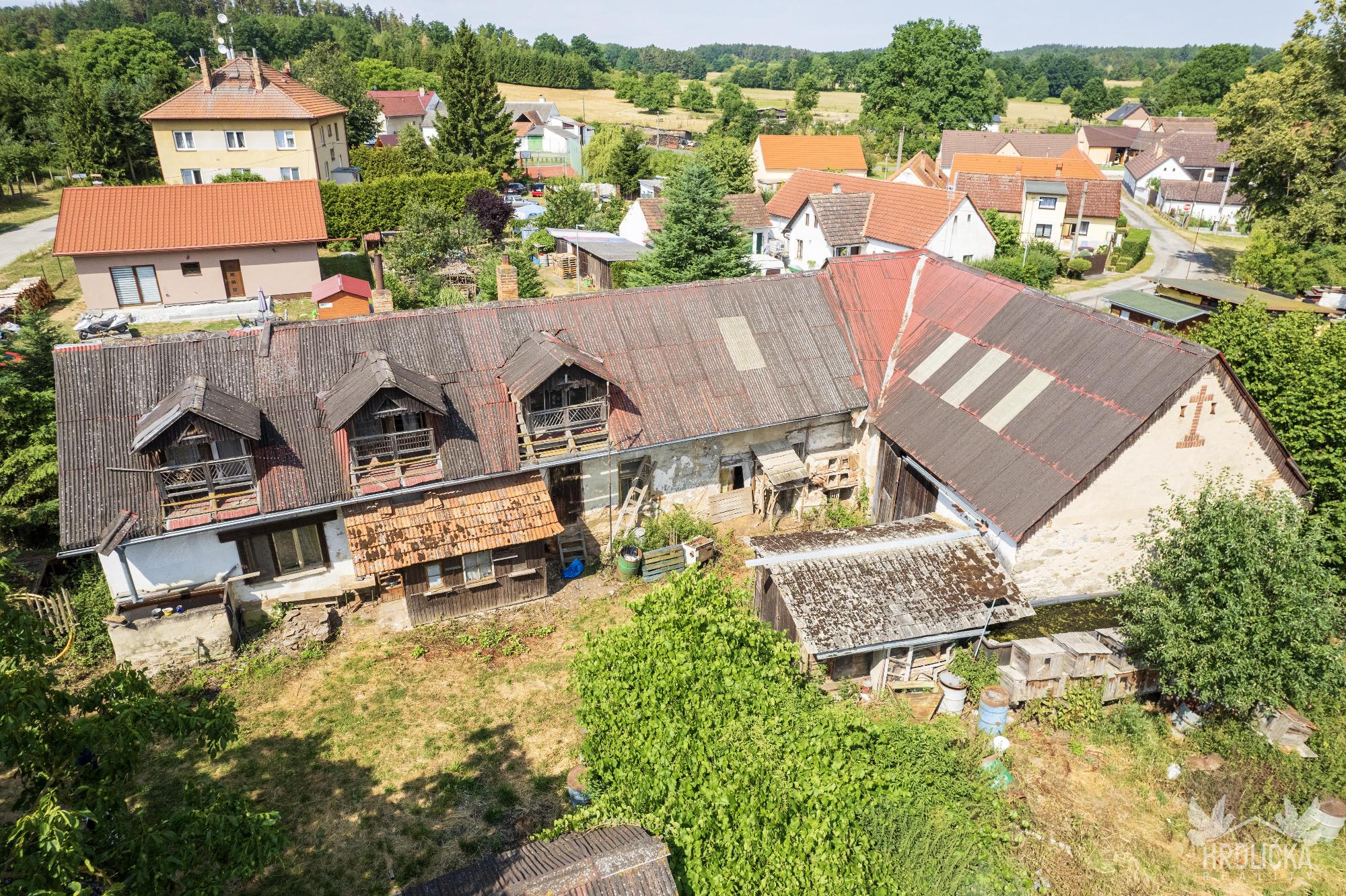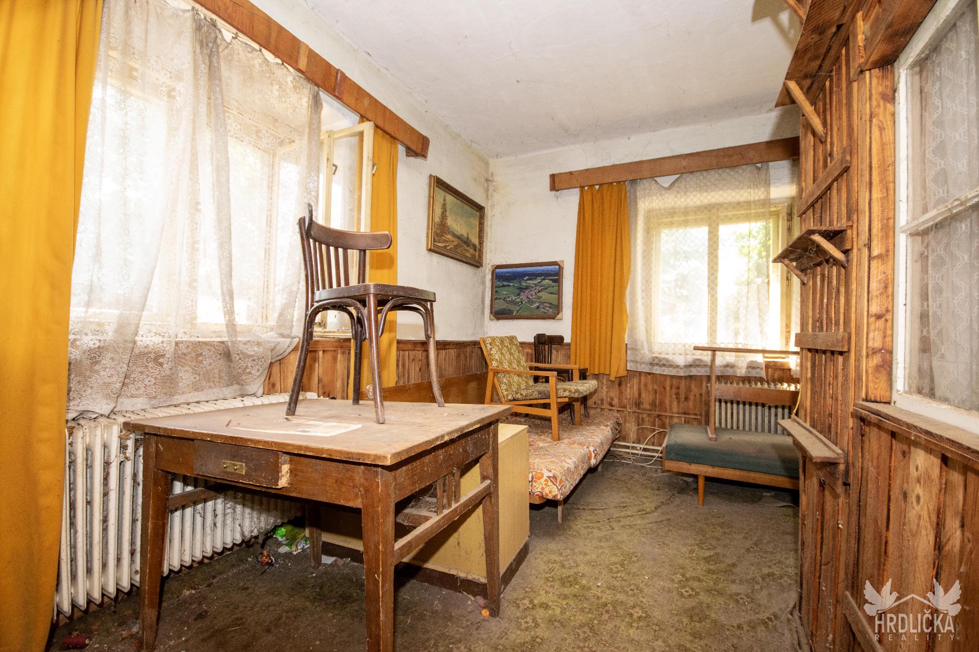 PRODÁNO - Chalupa s velkým pozemkem v klidné obci Láz. Jedná se o původní venkovské stavení se stodolou a maštalí. Obytná část se skládá ze 2 obytných pokojů a kuchyně. Na obytnou část s užitnou plochou 68 m2 navazují chlévy a stodola, ve které se nachází sklep. Jedná se o dlouhodobě nevyužívaný objekt k rekonstrukci případně k demolici a vystavění nového domu pro bydlení. Zastavěná plocha a nádvoří má plochu 855 m2. Na dům navazuje velký pozemek o velikosti 2.489 m2 využívaný jako zahrada, který je dle územního plánu zahrnutý mezi plochy venkovského bydlení. Stín v letních měsících zajišťuje velký ořešák u chalupy a ovocné stromy na zahradě. Dům využívá vodu z vlastní studny, odpad sveden do obecní kanalizace pravděpodobně pročištěn přes vlastní septik. Vytápění kamny na tuhá paliva nebo kotlem s rozvodem do ústředního topení. Ohřev vody zajišťoval elektrický bojler.