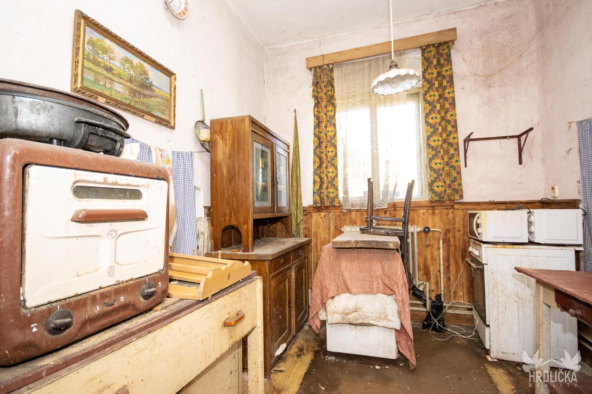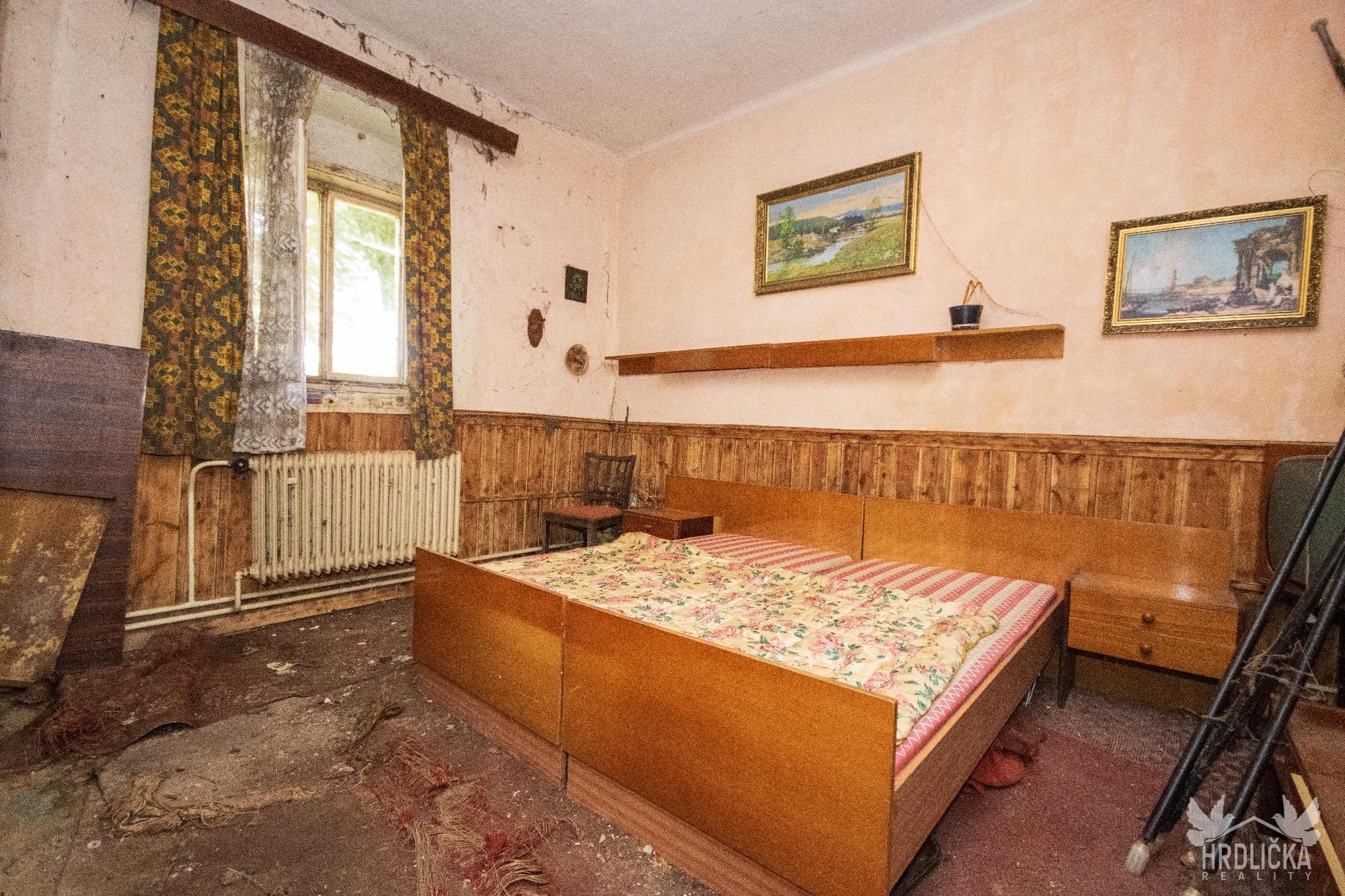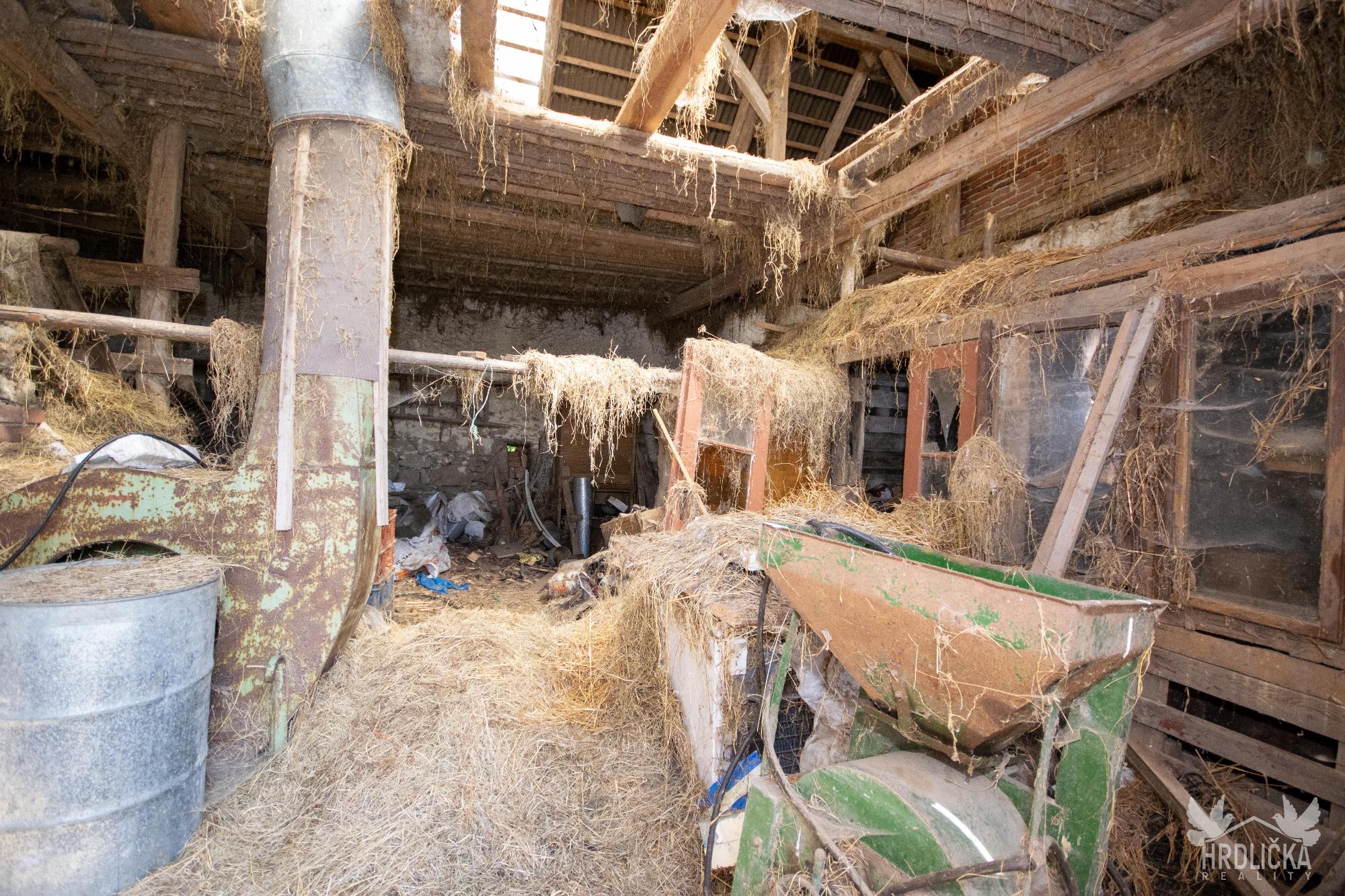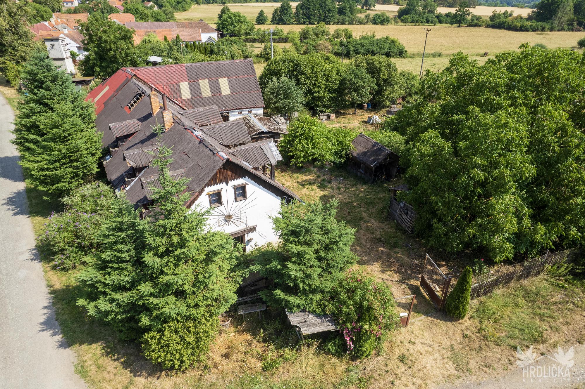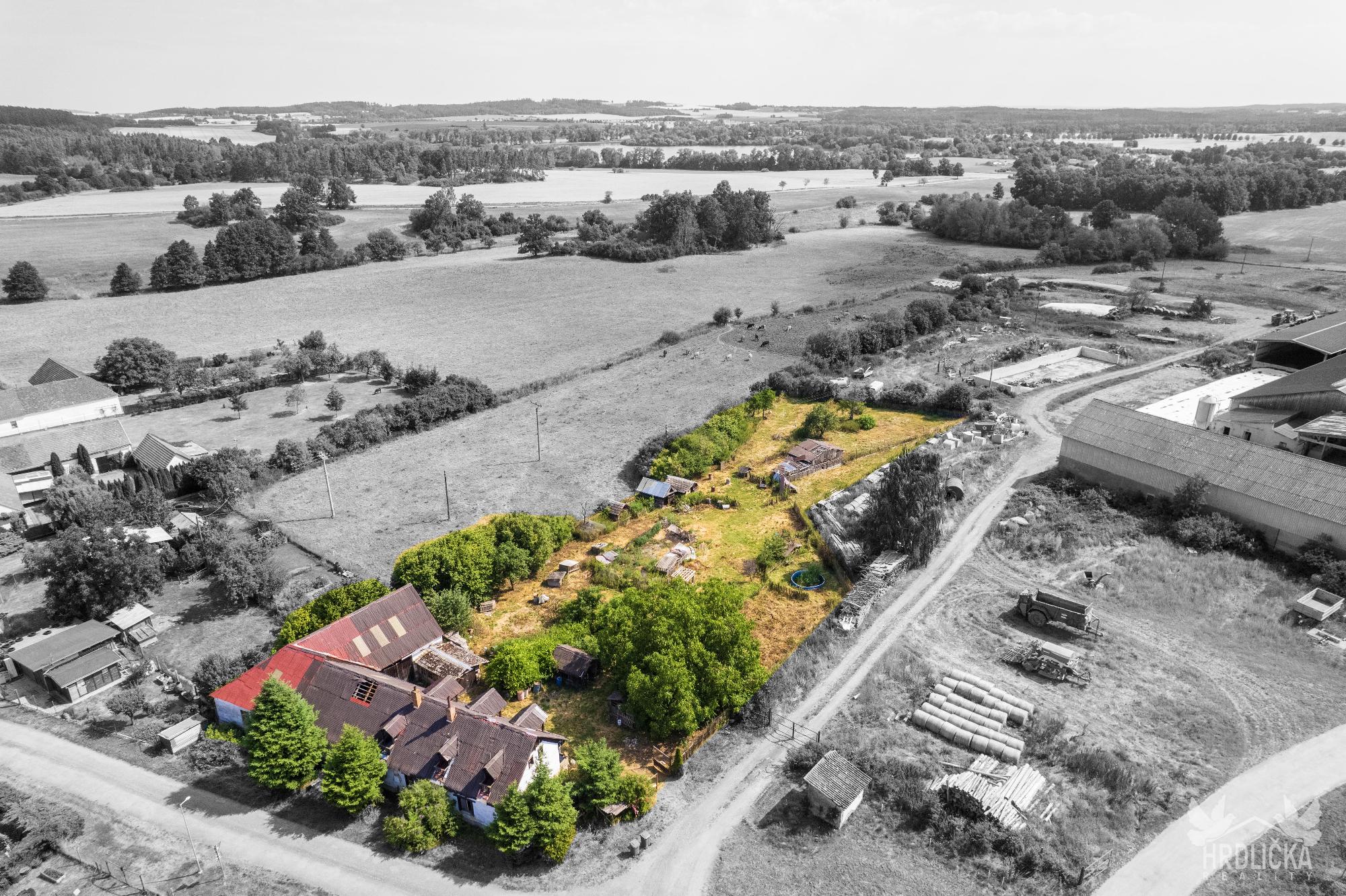 PRODÁNO - Chalupa s velkým pozemkem v klidné obci Láz. Jedná se o původní venkovské stavení se stodolou a maštalí. Obytná část se skládá ze 2 obytných pokojů a kuchyně. Na obytnou část s užitnou plochou 68 m2 navazují chlévy a stodola, ve které se nachází sklep. Jedná se o dlouhodobě nevyužívaný objekt k rekonstrukci případně k demolici a vystavění nového domu pro bydlení. Zastavěná plocha a nádvoří má plochu 855 m2. Na dům navazuje velký pozemek o velikosti 2.489 m2 využívaný jako zahrada, který je dle územního plánu zahrnutý mezi plochy venkovského bydlení. Stín v letních měsících zajišťuje velký ořešák u chalupy a ovocné stromy na zahradě. Dům využívá vodu z vlastní studny, odpad sveden do obecní kanalizace pravděpodobně pročištěn přes vlastní septik. Vytápění kamny na tuhá paliva nebo kotlem s rozvodem do ústředního topení. Ohřev vody zajišťoval elektrický bojler.