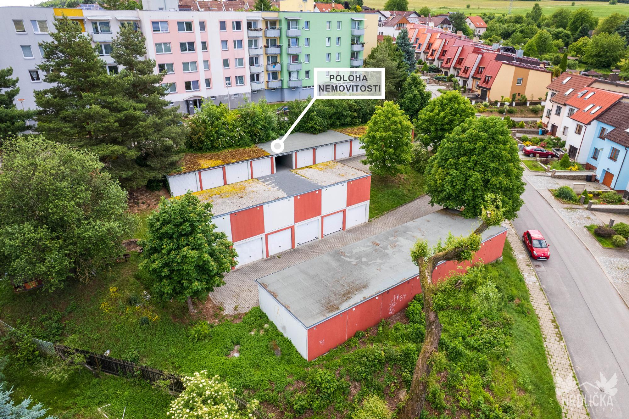 Garáž se nachází v ulici U zahrádek, v klidné a dobře přístupné části města. Příjezd k ní je po zpevněné komunikaci, která je ve spoluvlastnictví všech majitelů okolních staveb. Podíl na této přístupové cestě (1/18) je součástí prodeje. Garáž je napojena na elektřinu přes vlastní přípojku, k níž je uzavřena platná smlouva s dodavatelem energií. Vstup zajišťují plechová sekční vrata.