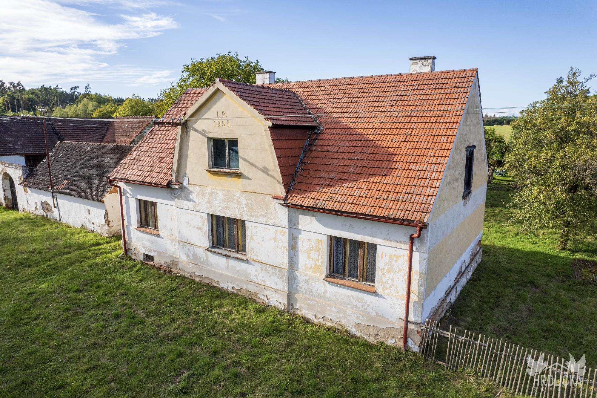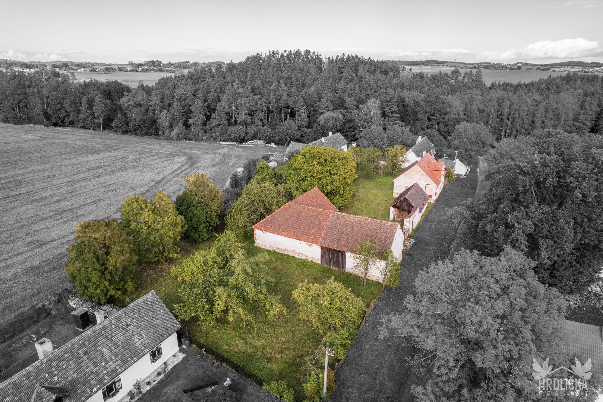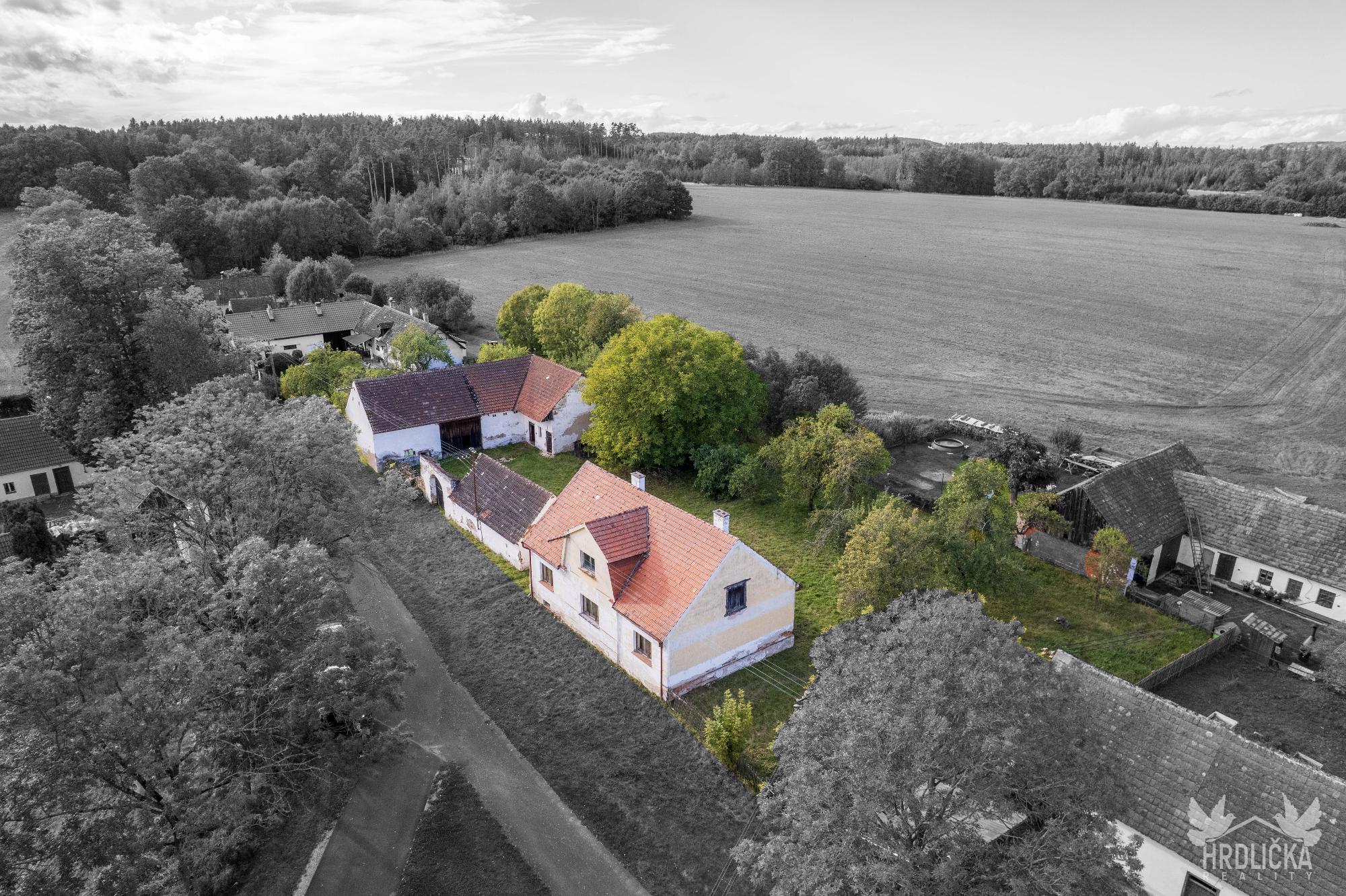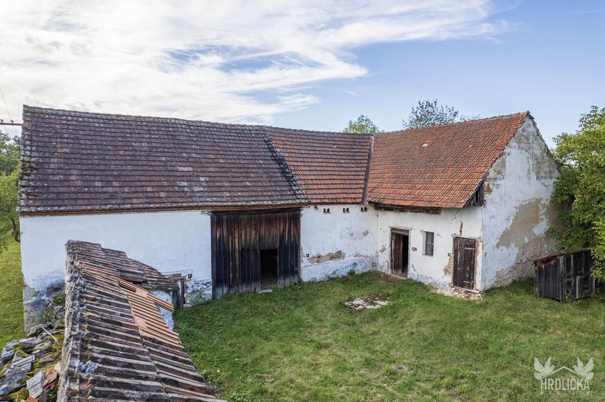 PRODÁNO - Rodinný dům s hospodářskými stavbami v osadě Nedílná, která se nachází nedaleko obce Brloh u Drhovle. Jedná se o soubor na sebe navazujících nemovitostí o celkové výměře 2.430 m2. Hlavní stavbu tvoří rodinný dům o dispozici 3+1, který má obytnou plochu 87 m2 a je rozložen do 1 podzemního podlaží (sklep 22 m2) a jednoho nadzemního podlaží s možností vybudování další obytné části v podkroví objektu (půda 99 m2), které je velmi dobře výškově řešené a přístupné po schodišti. Obytná část se skládá z centrální chodby, která skýtá vstup do ložnice a průchozího obývacího pokoje, na který navazuje další ložnice. Chodba dále nabízí vstup do kuchyně, za kterou se nachází sociální zařízení, na samostatné WC, spíž a schodišťový prostor na půdu a do sklepa. Nemovitost je vytápěna lokálními zdroji - kamna na tuhá paliva. Připojena je na elektrický proud, který je rozveden hliníkovým rozvodem (230 V) po celé obytné části. Voda z vlastní kopané studny a splaškové vody svedeny do septiku, který se nachází přímo na pozemku. Na tento dům navazuje drobná stavba - sklad dřeva a chlév a dále hospodářská budova - stodola a stáj, za kterou se nachází další rozlehlá zahrada. Příjezd přímo k nemovitosti po asfaltové komunikaci v majetku obce.