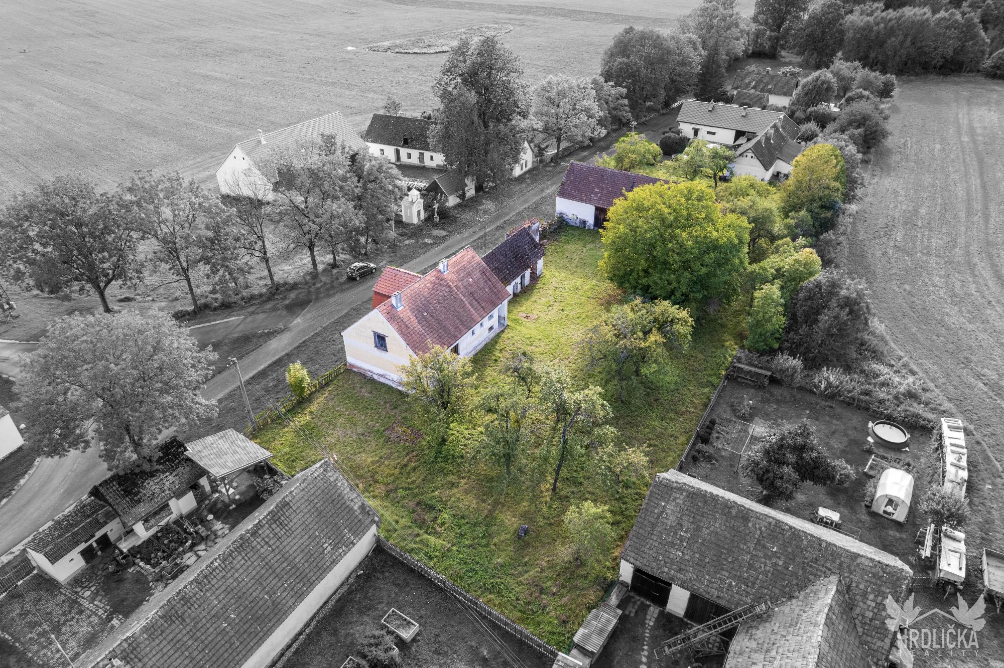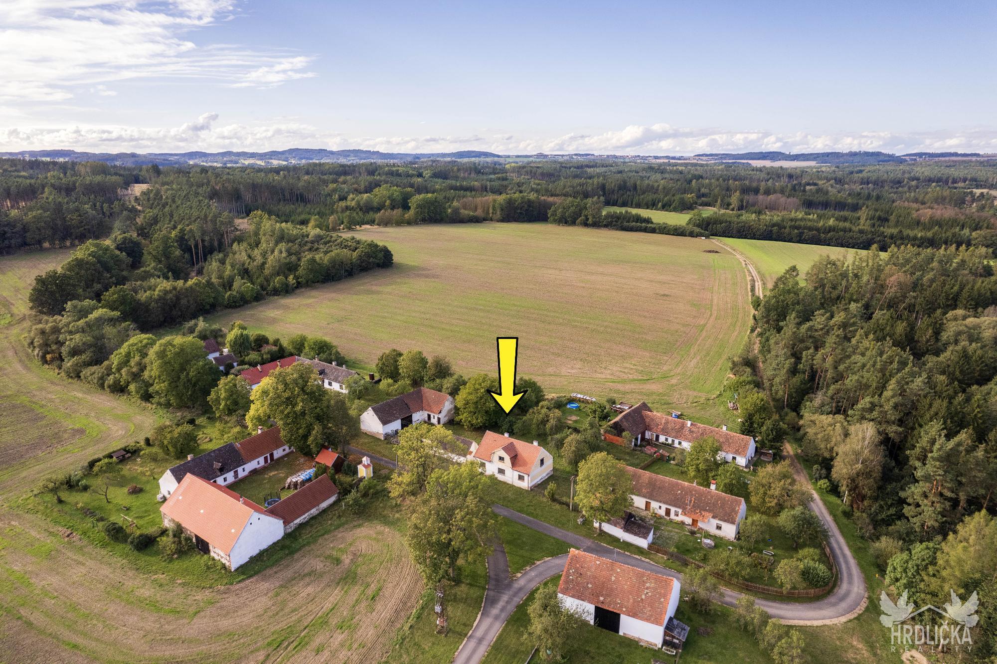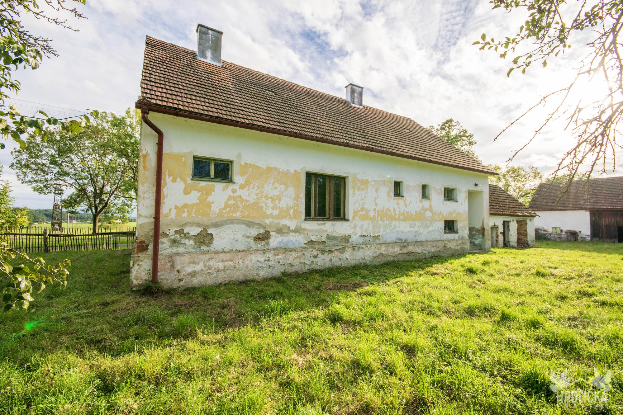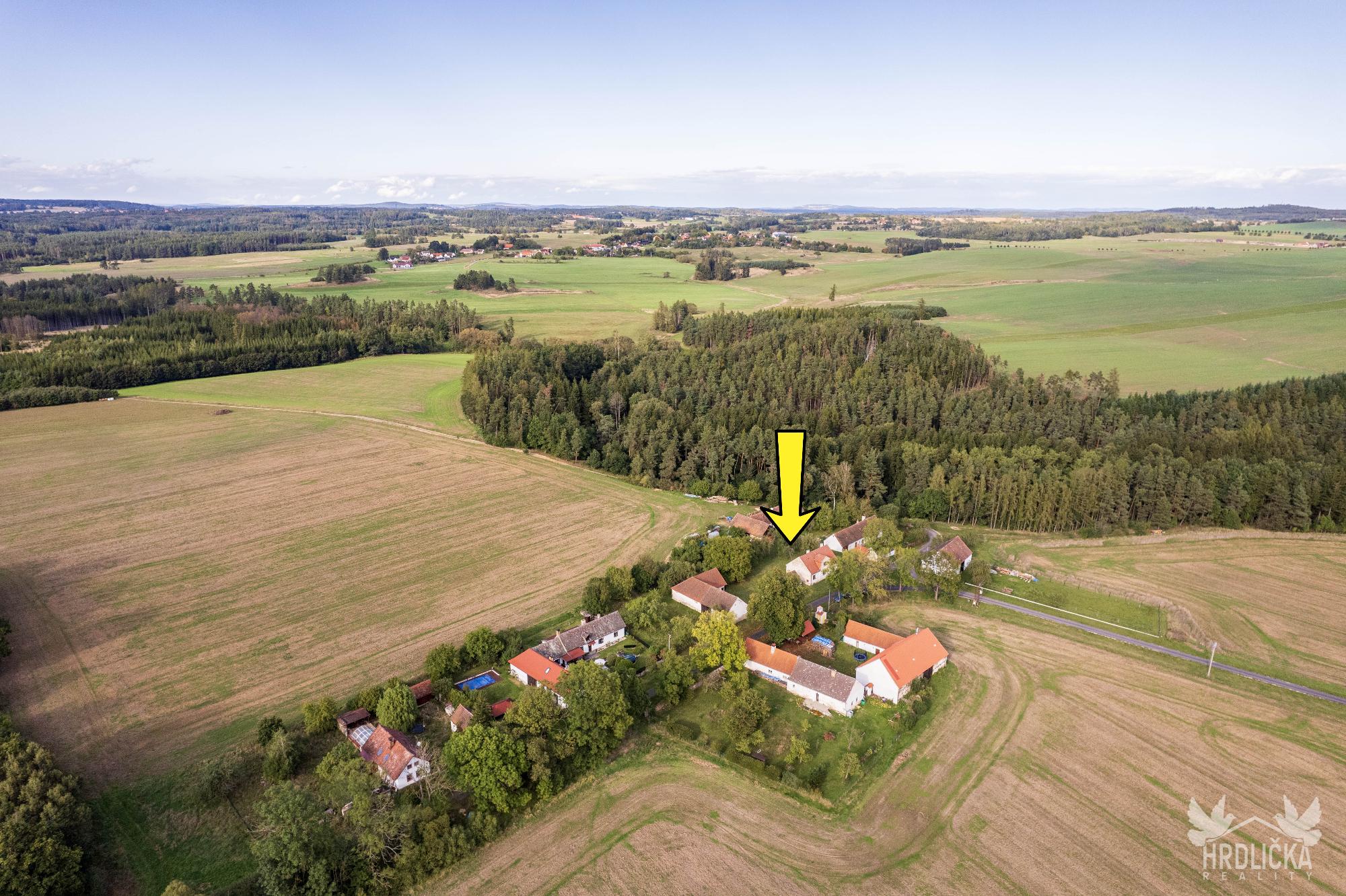 PRODÁNO - Rodinný dům s hospodářskými stavbami v osadě Nedílná, která se nachází nedaleko obce Brloh u Drhovle. Jedná se o soubor na sebe navazujících nemovitostí o celkové výměře 2.430 m2. Hlavní stavbu tvoří rodinný dům o dispozici 3+1, který má obytnou plochu 87 m2 a je rozložen do 1 podzemního podlaží (sklep 22 m2) a jednoho nadzemního podlaží s možností vybudování další obytné části v podkroví objektu (půda 99 m2), které je velmi dobře výškově řešené a přístupné po schodišti. Obytná část se skládá z centrální chodby, která skýtá vstup do ložnice a průchozího obývacího pokoje, na který navazuje další ložnice. Chodba dále nabízí vstup do kuchyně, za kterou se nachází sociální zařízení, na samostatné WC, spíž a schodišťový prostor na půdu a do sklepa. Nemovitost je vytápěna lokálními zdroji - kamna na tuhá paliva. Připojena je na elektrický proud, který je rozveden hliníkovým rozvodem (230 V) po celé obytné části. Voda z vlastní kopané studny a splaškové vody svedeny do septiku, který se nachází přímo na pozemku. Na tento dům navazuje drobná stavba - sklad dřeva a chlév a dále hospodářská budova - stodola a stáj, za kterou se nachází další rozlehlá zahrada. Příjezd přímo k nemovitosti po asfaltové komunikaci v majetku obce.