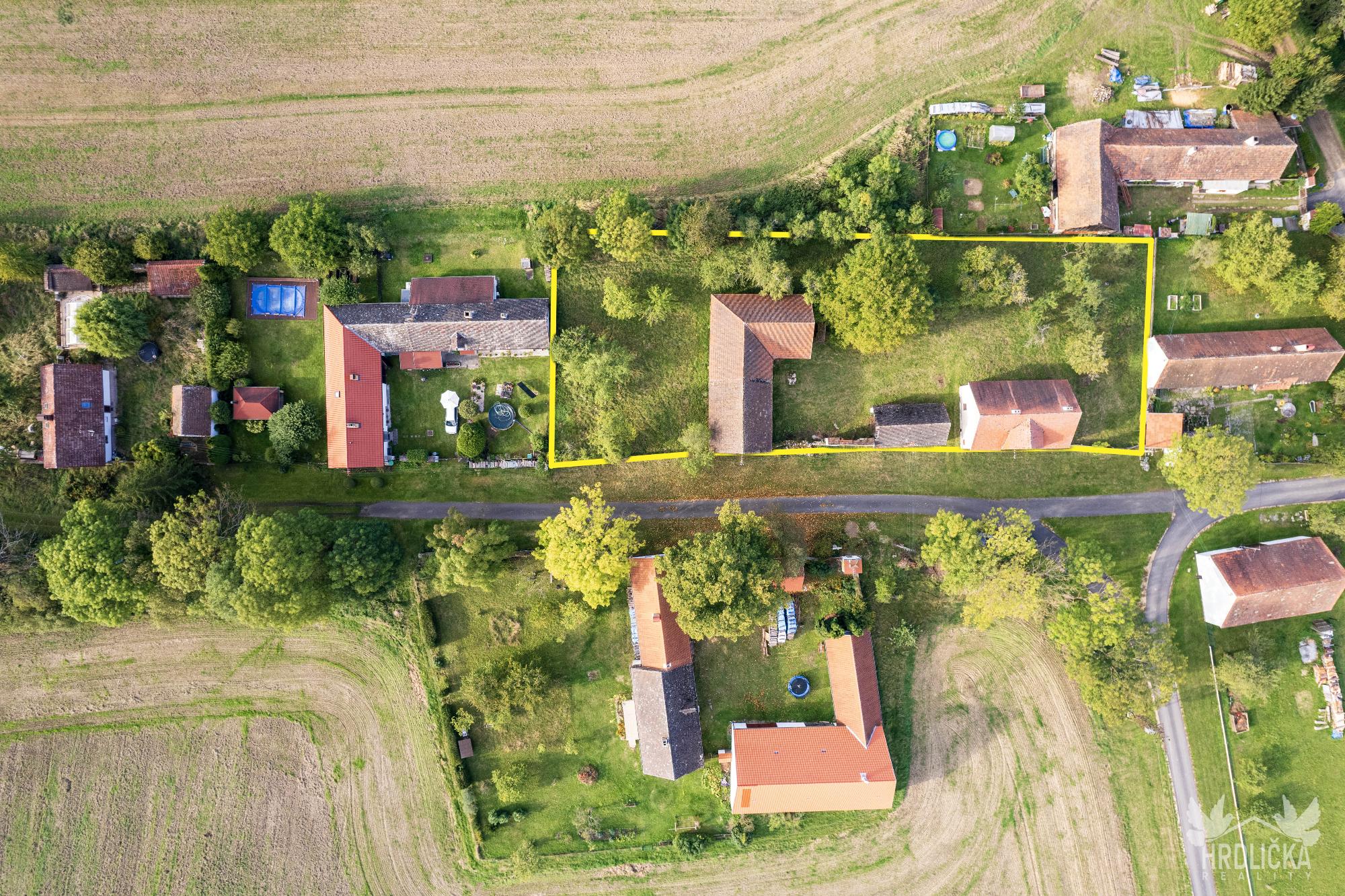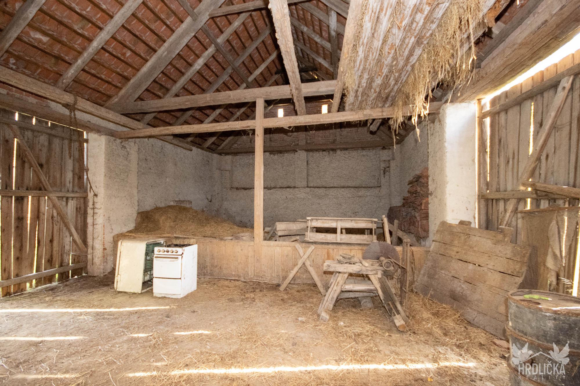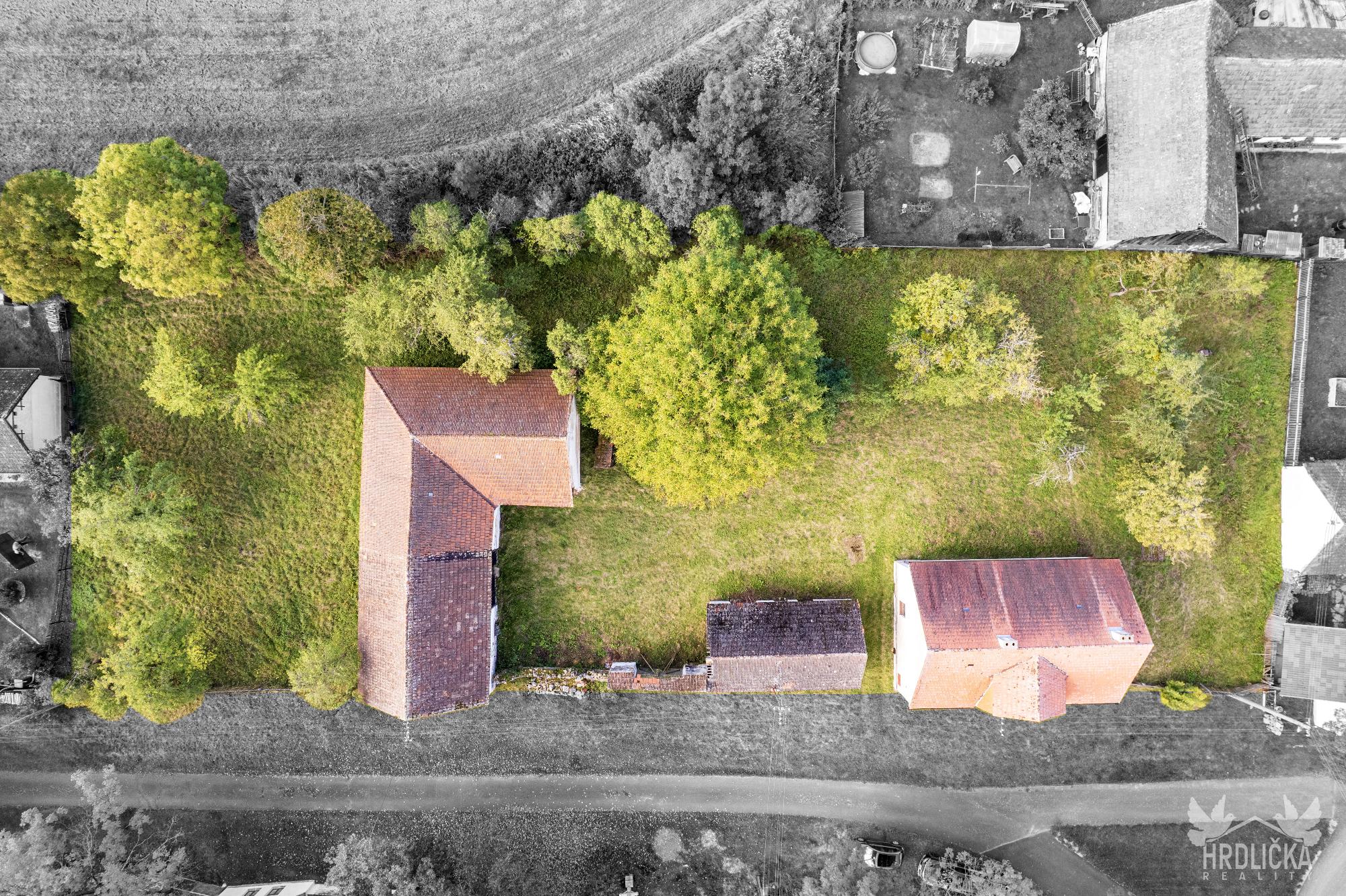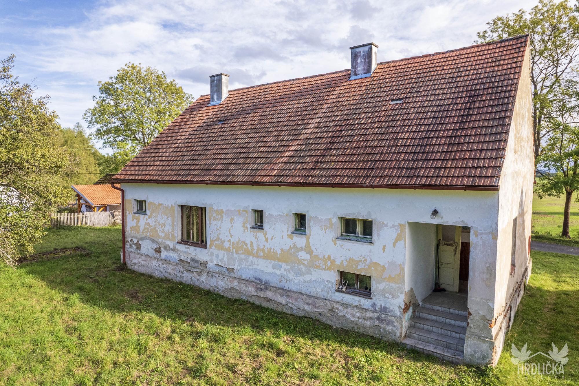 PRODÁNO - Rodinný dům s hospodářskými stavbami v osadě Nedílná, která se nachází nedaleko obce Brloh u Drhovle. Jedná se o soubor na sebe navazujících nemovitostí o celkové výměře 2.430 m2. Hlavní stavbu tvoří rodinný dům o dispozici 3+1, který má obytnou plochu 87 m2 a je rozložen do 1 podzemního podlaží (sklep 22 m2) a jednoho nadzemního podlaží s možností vybudování další obytné části v podkroví objektu (půda 99 m2), které je velmi dobře výškově řešené a přístupné po schodišti. Obytná část se skládá z centrální chodby, která skýtá vstup do ložnice a průchozího obývacího pokoje, na který navazuje další ložnice. Chodba dále nabízí vstup do kuchyně, za kterou se nachází sociální zařízení, na samostatné WC, spíž a schodišťový prostor na půdu a do sklepa. Nemovitost je vytápěna lokálními zdroji - kamna na tuhá paliva. Připojena je na elektrický proud, který je rozveden hliníkovým rozvodem (230 V) po celé obytné části. Voda z vlastní kopané studny a splaškové vody svedeny do septiku, který se nachází přímo na pozemku. Na tento dům navazuje drobná stavba - sklad dřeva a chlév a dále hospodářská budova - stodola a stáj, za kterou se nachází další rozlehlá zahrada. Příjezd přímo k nemovitosti po asfaltové komunikaci v majetku obce.