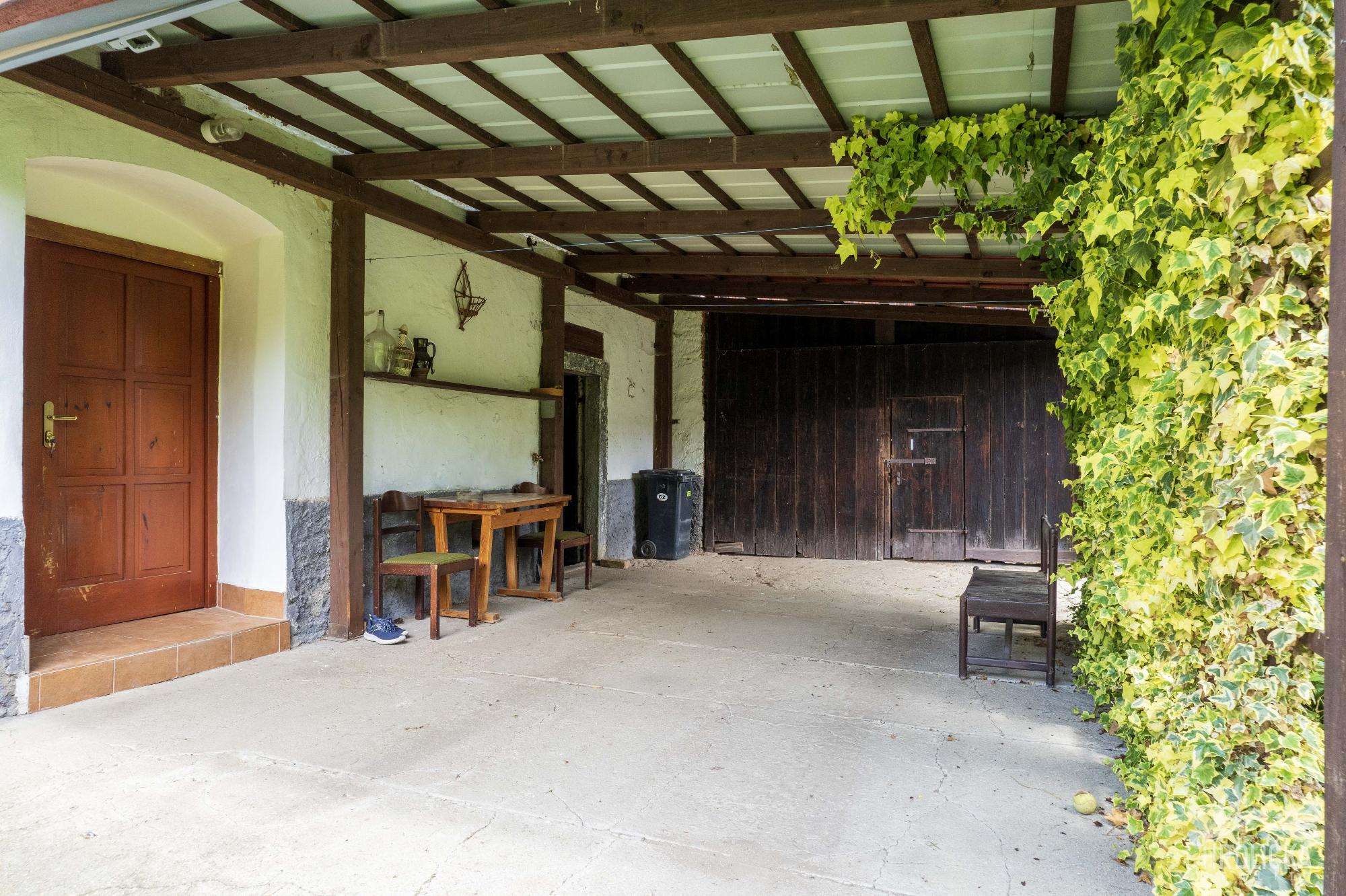 Proti domu je samostatná zděná budova, kde se nachází stáje, výběh pro drůbež a sklad paliva. K domu náleží velká zahrada s výměrou 2.687 m2.
