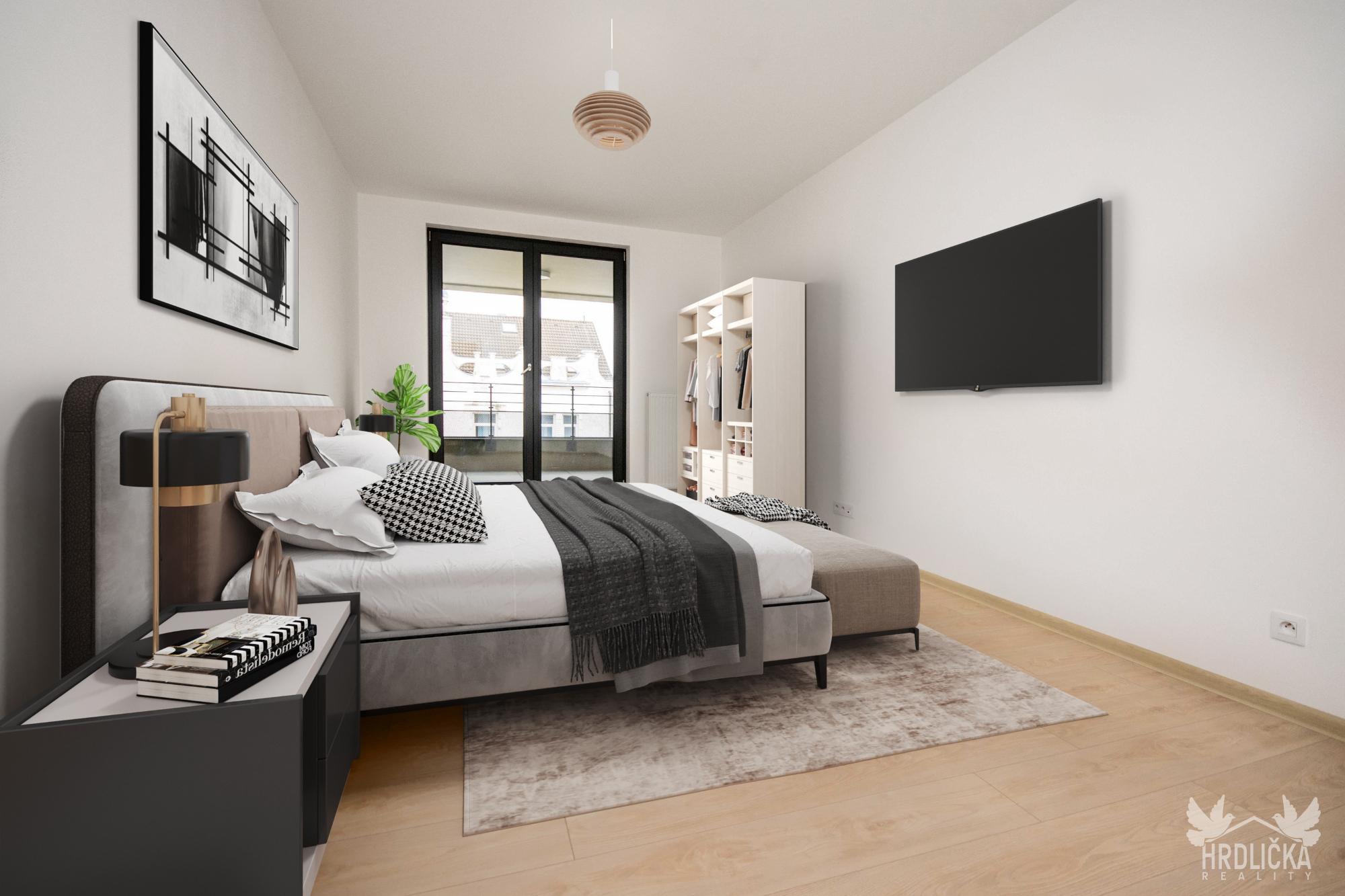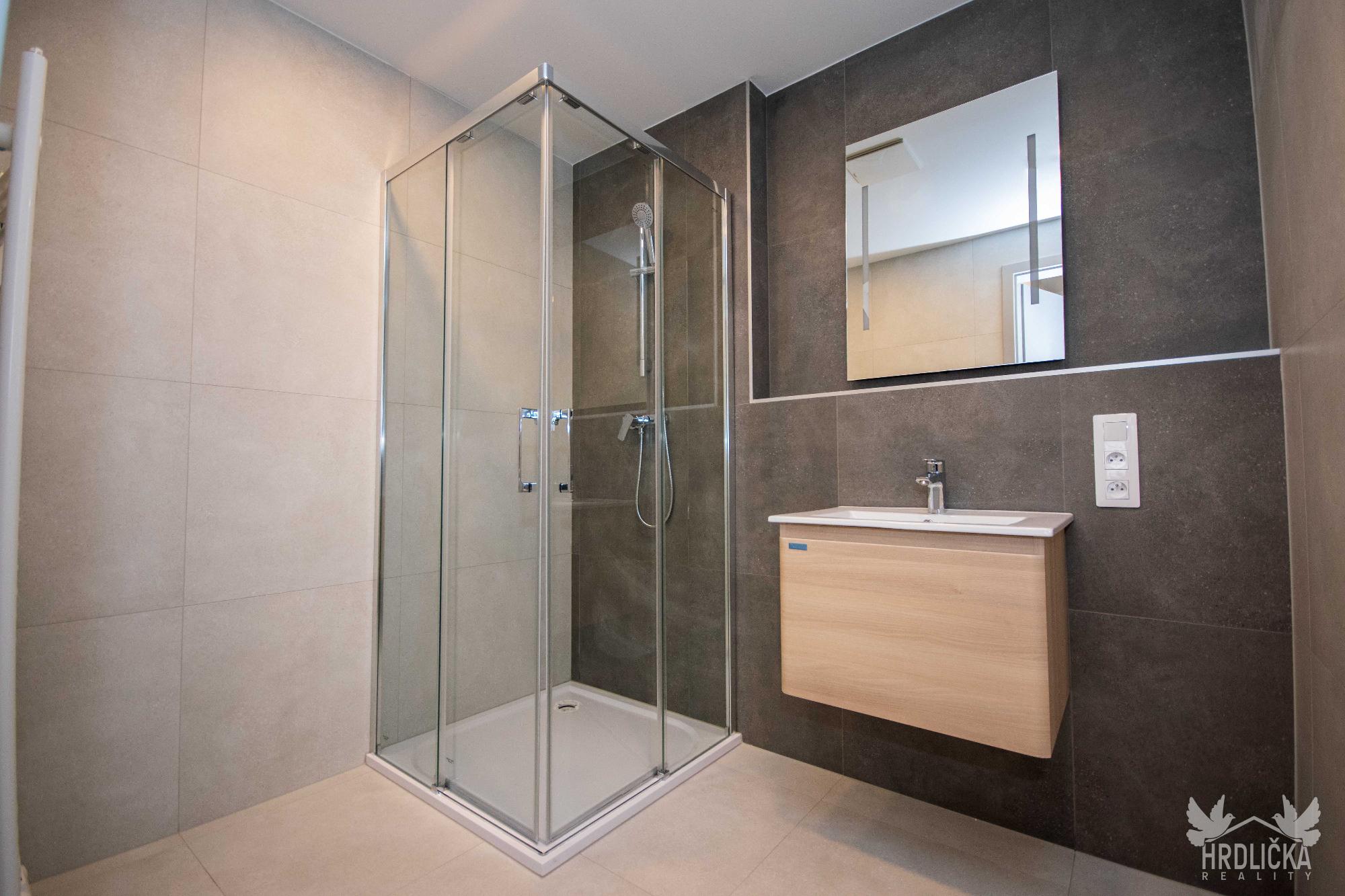 PRONAJATO - Nový byt o dispozici 2+kk a podlahové ploše 78 m2 s terasou v právě dokončené novostavbě domu v centru Strakonic - Palackého náměstí. Bytový dům, ve kterém se jednotka nachází, má 6 nadzemních podlaží, je zastřešen plochou střechou s vegetačním souvrstvím a je plně bezbariérový. V bytě je zvolen vysoký standard, kvalitní podlaha v dekoru běleného dubu, moderní vybavení, předokenní žaluzie a plastová okna s trojitým prosklením. Byt disponuje domovním zvonkem s video interkomem, ovládání multifunkčním tabletem. Jednotku tvoří prostorný obývací pokoj spojený s kuchyní, velká ložnice, úložné prostory, chodba, koupelna se sprchovým koutem a samostatné WC. Z obou místností je vstup na prostornou terasu směřující jihovýchodně. Byt je částečně vybaven, součástí je stylová kuchyňská linka s vestavěnými spotřebiči - multifunkční trouba, sklo-keramická deska, digestoř a myčka. Ve fotogalerii nalezneme realné fotografie a návrhové vizualizace. K bytu náleží sklepní kóje. Celý objekt je zabezpečen kamerovým systémem a detektory kouře. V bezprostředním dosahu od budovy je veškerá občanská vybavenost - potraviny, kavárny, restaurace, lékařské služby, zastávka MHD a nákupní centra.