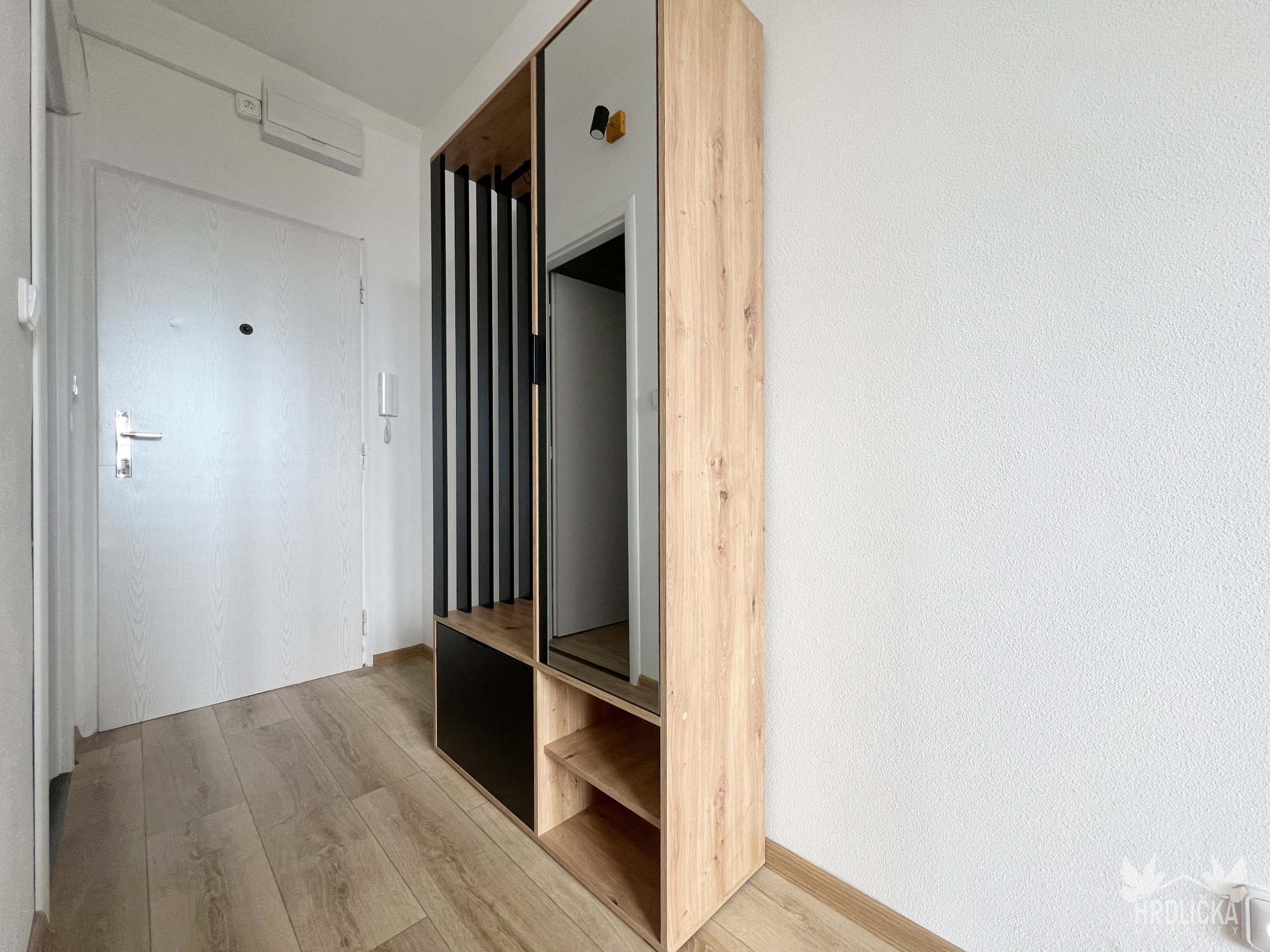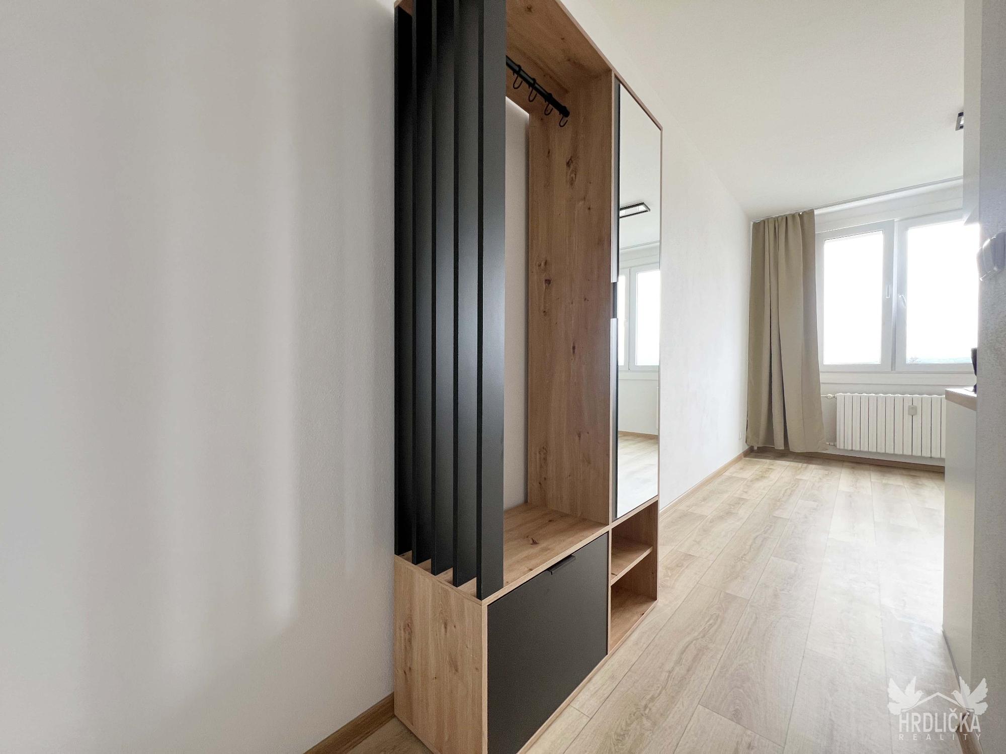 PRONAJATO - Krásný byt 2+kk s balkonem o celkové ploše 36 m2 po právě dokončené rekonstrukci. Dům je situován v oblíbené lokalitě - ul. Zvolenská. Byt se nachází v 8. patře zatepleného panelového domu s novým výtahem. Byt se skládá z ložnice se vstupem na balkon a prostorné kuchyně spojené s obývacím pokojem. Kuchyň je vybavena nadstandardní kuchyňskou linkou s vestavěnými spotřebiči - varná sklo-keramická deska, digestoř, el. trouba a pračka. Krásná, stylová koupelna se sprchovým koutem, vč. koupelnové skříňky, zrcadla a toalety. Rekonstrukce byla velice prakticky řešena, všude dostatek zásuvek. Plastová okna, nové štuky, omítky, rozvody elektřiny, LED osvětlení. K dispozici moderní závěsy. Kvalitní vinylové podlahy, v koupelně velkoformátová dlažba. Součástí pronájmu je i sklepní kóje. V blízkosti je zastávka MHD, prodejna potravin, sportovní centrum a další.