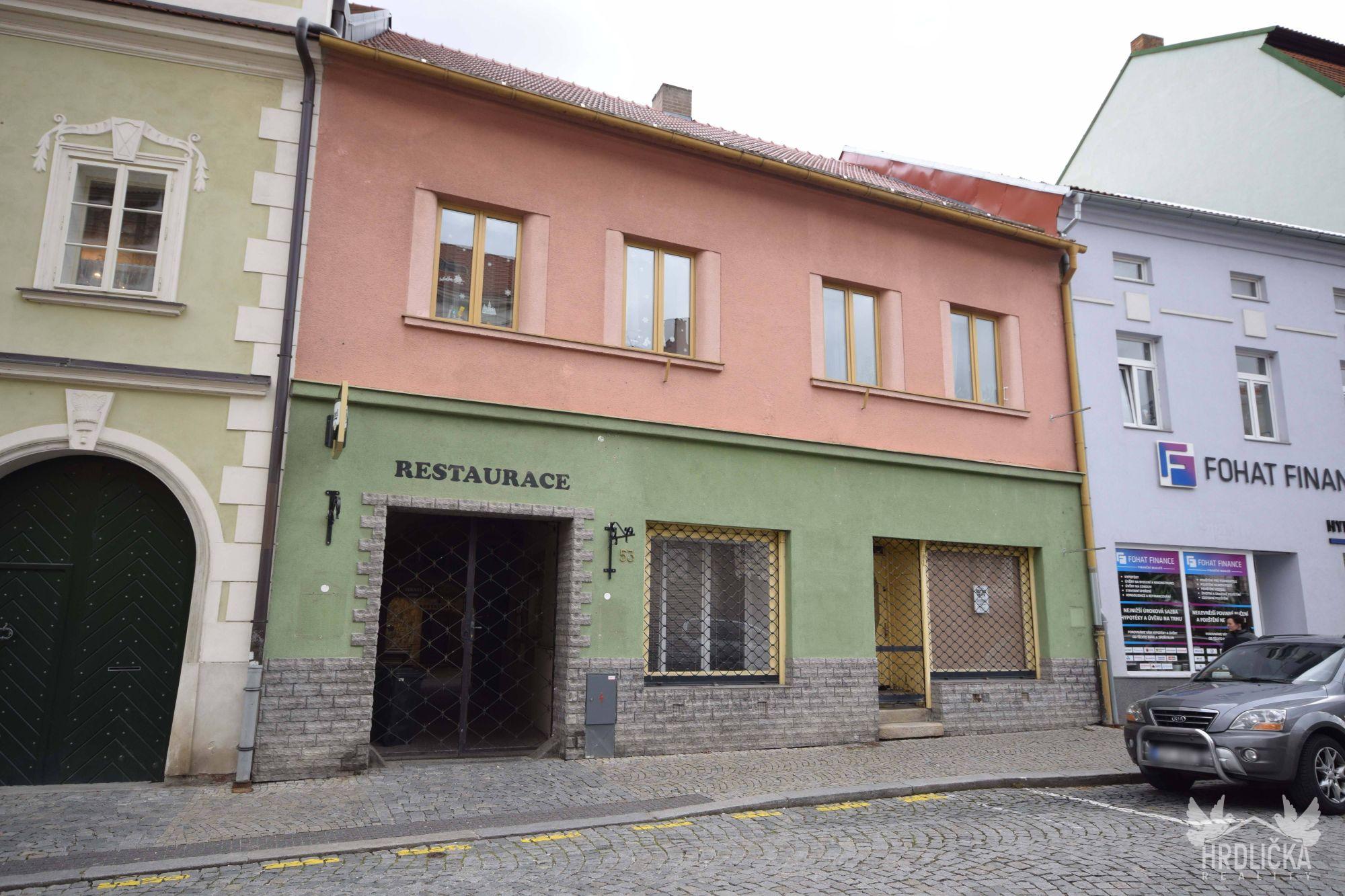 PRONAJATO - Stylová dvoupatrová restaurace s barem, kuchyní a dvěma terasami na Velkém náměstí v centru Strakonic. V přízemí budovy se nachází restaurace v irském stylu o celkové ploše 73 m2, zde je k dispozici cca 40 míst pro zákazníky + venkovní terasa, která nabízí dalších cca 20 míst k sezení. Dřevěné podlahy ve velmi dobrém stavu a kvalitní dlažba. K dispozici zůstane veškerý nábytek, který je vidět na fotografiích. Dále se zde nachází téměř kompletně zařízená kuchyně v nerezu (k dispozici konvektomat, myčka, sporák, fritéza, mikrovlnná trouba, lednice s mrazákem, nádobí - talíře, příbory, hrnce, sklenice, atd), nové odvětrávání, sklad pro suché potraviny, místnost pro chladící boxy, výtah pro výdej jídla do horní restaurace. Vše splňuje aktuální hygienické předpisy. Dále zde najdeme místnost pro chlazení piva s rozvody pro horní i dolní restauraci, zázemí pro zaměstnance - dvoje toalety, sprcha, šatna, pokoj - možno využít k přespání. V patře budovy se nachází další restaurace s terasou. Tato restaurace je v husitském stylu. Vnitřek o ploše 136 m2 skýtá cca 90 míst k sezení, venkovní terasa o ploše 40 m2 minimálně dalších 20 míst. K dispozici 2 lednice, trezor, výrobník ledu, stoly, židle, barové židle a další vkusné vybavení (možno nadále užívat za 4.000,- K/měsíčně). Celková užitná plocha obou pater je 429 m2. Toalety v přízemí i v patře jsou po rekonstrukci ve velmi dobrém stavu. K dispozici funkční kasa s tiskárnou. Lokalita nabízí vynikající dopravní dostupnost MHD, autem i pěšky. Možnost parkování na okolních placených parkovacích stání.