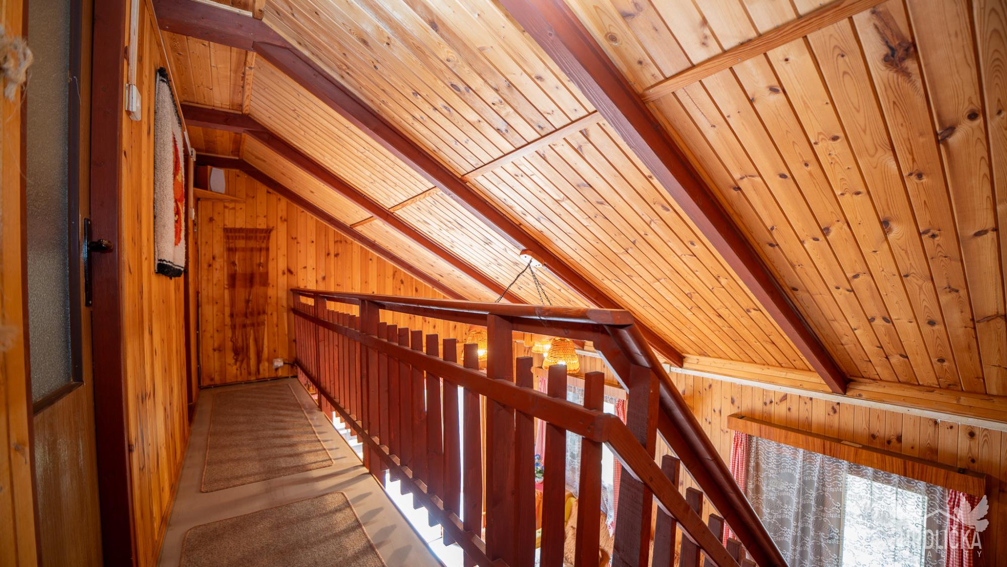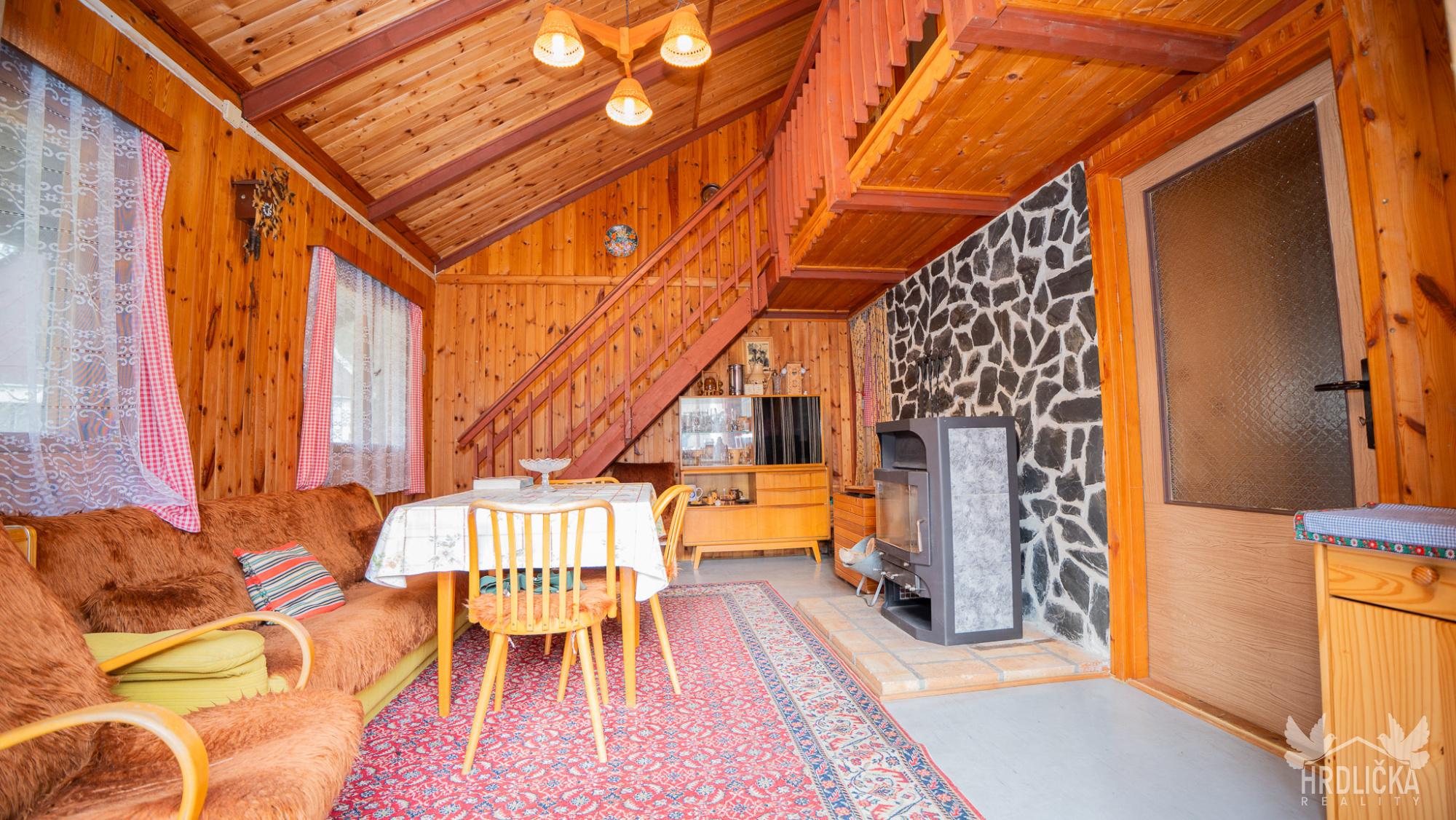 Dominantou chaty je světlý obývací pokoj s přímým vstupem na prostornou venkovní terasu, ideální pro relaxaci i posezení s rodinou či přáteli. Tento prostor je částečně otevřený až do podkroví, což dodává interiéru vzdušnost a jedinečný charakter. Dále se v hlavním podlaží nachází ložnice, kuchyňský kout, chodba a splachovací WC. V podkroví jsou situovány další dva pokoje určené ke spaní.